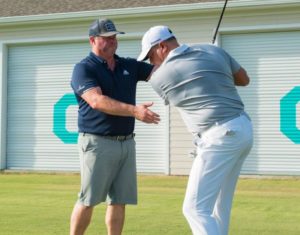 All right. So today, first I want to introduce our newest full-time teacher here at the Classic Swing Golf School. This is Karsten Kenley. And as you can see, he’s got a ducky on his head, because we’re trying to get his head right. But there will be a purpose of this duck in an upcoming tip.